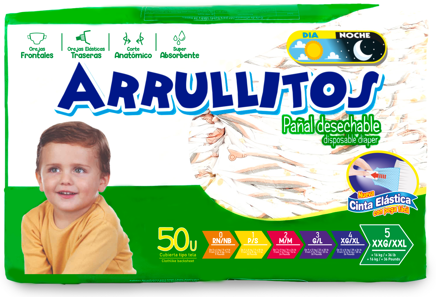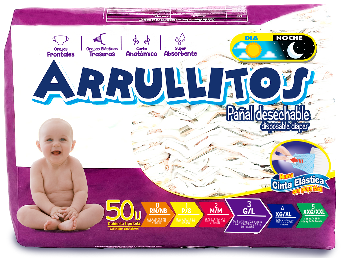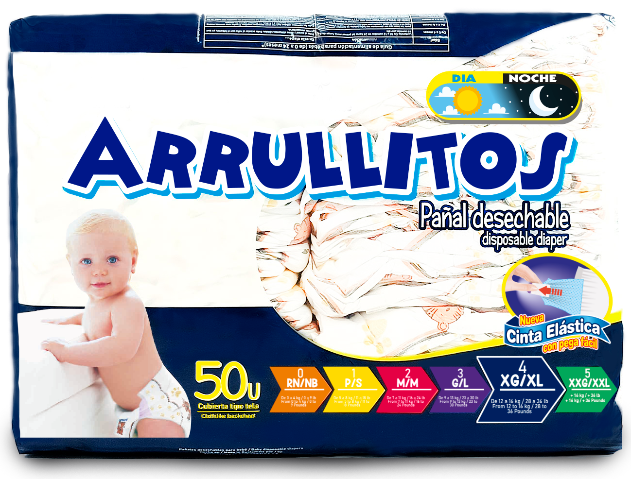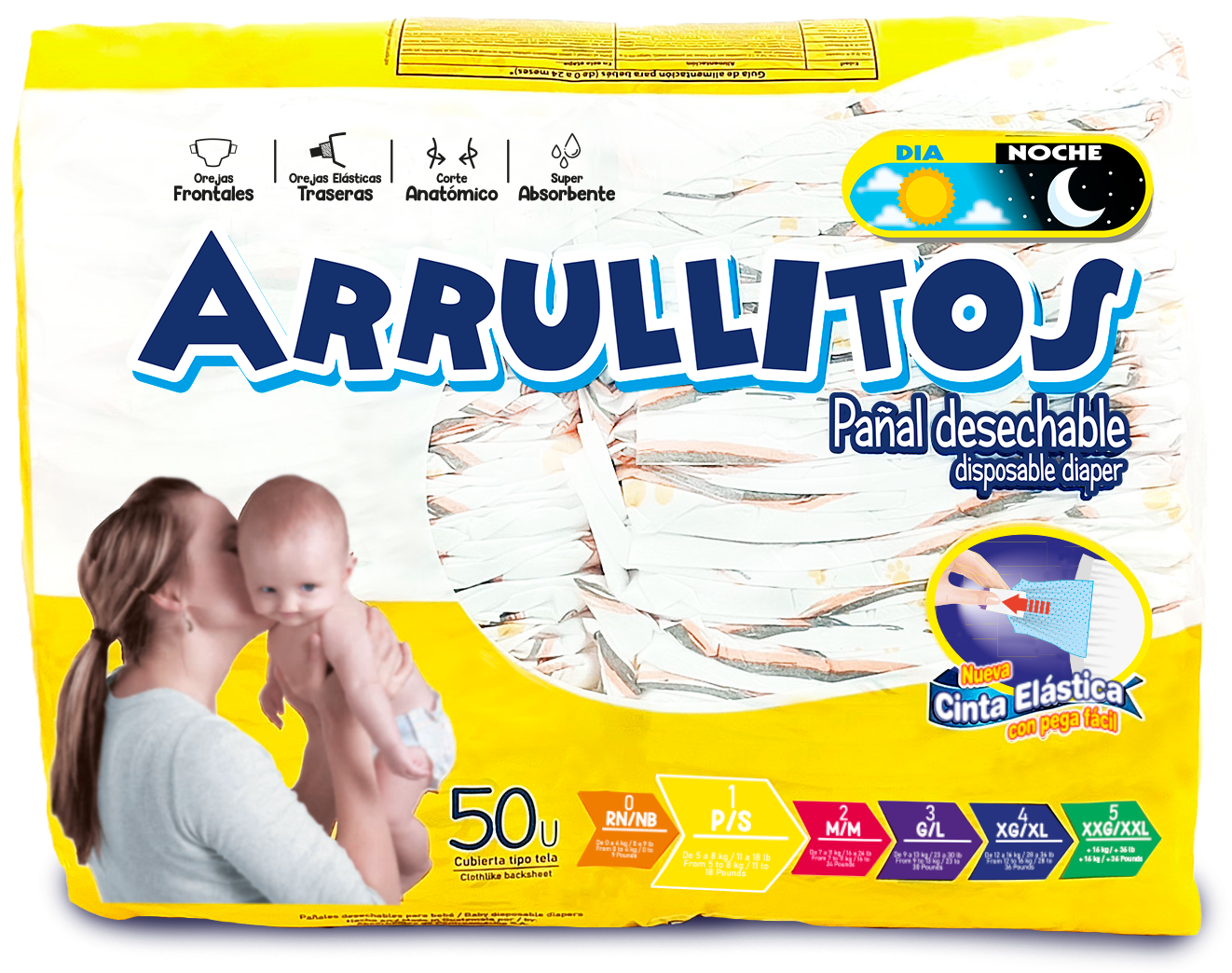 PAÑALES ARRULLITOS 50 UNIDADES TALLA XXG